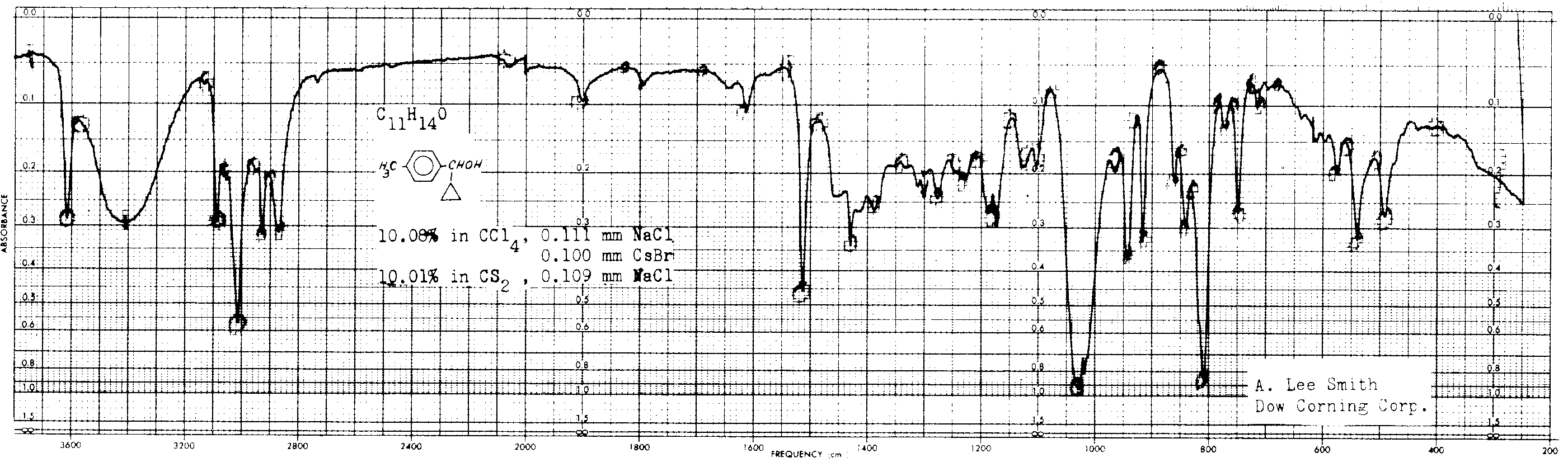 Notice: Except where noted, spectra from this collection were measured on dispersive instruments, often in carefully selected solvents, and hence may differ in detail from measurements on FTIR instruments or in other chemical environments. More information on the manner in which spectra in this collection were collected can be found here.